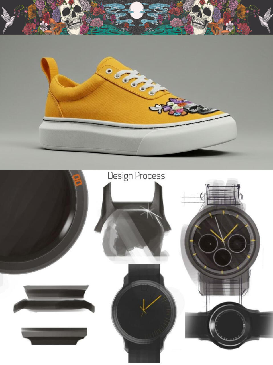 The Electric Root: A speculative design project exploring the intersection of nature and consumerism. I am architecting a conceptual art piece featuring a tree that "blooms" vibrant sneakers—grown, not manufactured.Uqaab: A study in industrial design and mechanical utility. I designed this wristwatch with a unique pop-up mechanism, allowing it to transition seamlessly from a personal timepiece to a functional desk clock. It represents my fascination with physical product constraints and tactile user interfaces.Chunri: An exercise in narrative architecture and visual storytelling. This comic book is inspired by the true stories of South Asian women, requiring a deep dive into persona development and emotional engagement to translate complex lived experiences into a compelling visual story, allowing their voices to be heard.